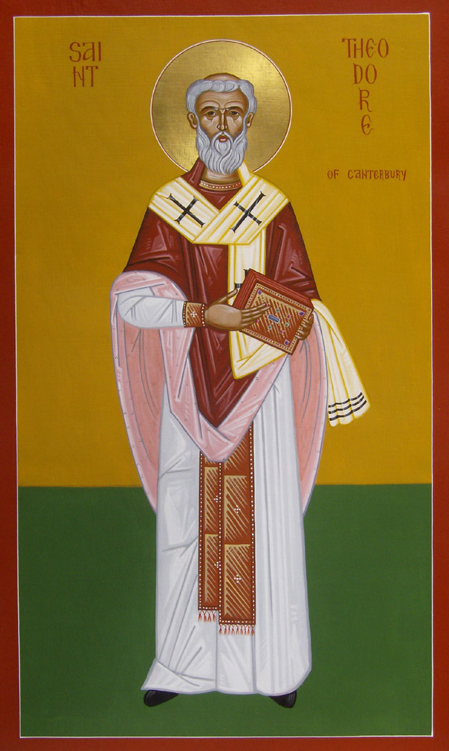 Born in Tarsus (the city of St. Paul’s birth), Theodore was raised in the cosmopolitan atmosphere of the Greek-speaking Mediterranean world. He was well-educated, with wide interests. He had become a monk and knew the traditions of the desert fathers. He was living in Italy, perhaps in a monastery under Adrian (or Hadrian), the African abbot of a Neapolitan monastery, who introduced Theodore to Pope Vitalian.